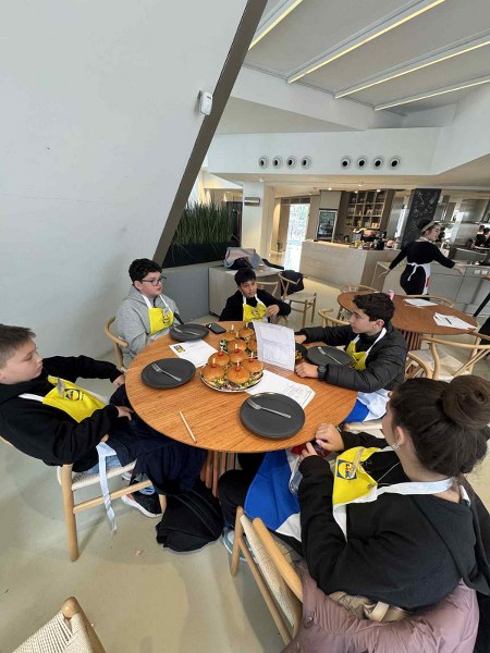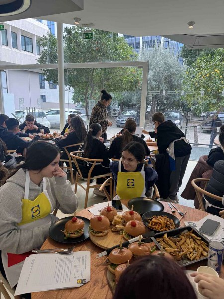 Στις 28 Ιανουαρίου 2026 είκοσι πέντε μαθητές από διαφορετικά τμήματα της Α’ Γυμνασίου είχαν την ευκαιρία να επισκεφθούν την Ακαδημία Φαγητού της LIDL στη Λευκωσία και να συμμετέχουν σε εργαστήρια μαγειρικής. Τα εργαστήρια μαγειρικής για τα παιδιά αποτελούν ένα ευχάριστο και διαδραστικό μάθημα, το οποίο προσφέρει όχι μόνο πολύτιμες γνώσεις γύρω από το φαγητό και τη διατροφή, αλλά και δημιουργικές ώρες με συμμαθητές/συμμαθήτριες και εκπαιδευτικούς. Η εμπειρία ολοκληρώθηκε με την παρασκευή ενός θρεπτικού γεύματος από τα ίδια τα παιδιά. Τους μαθητές συνόδευσαν οι καθηγήτριες Αγωγής Υγείας του σχολείου μας κ. Ειρήνη Ονουφρίου και κ. Γεωργία Λοΐζου. Το πρόγραμμα εντάσσεται στο μάθημα Αγωγής Υγείας και συνδέεται με τις θεματικές ενότητες, τους δείκτες επιτυχίας και επάρκειας του μαθήματος. Το πρόγραμμα υλοποιήθηκε στα πλαίσια της συνεργασίας του Υπουργείου Παιδείας, Αθλητισμού και Νεολαίας (ΥΠΑΝ) και της Lidl Κύπρου.