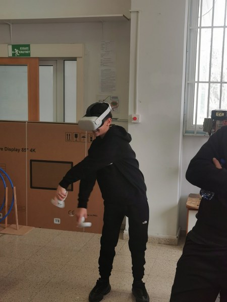 Στην 2η ενότητα οι μαθήτριες/τες ήρθαν σε μια πιο διευρυμένη επαφή με τον κόσμο της επαυξημένης και εικονικής πραγματικότητας. Με τη χρήση ειδικού εξοπλισμού εικονικής πραγματικότητας οι μαθητές έζησαν τη διαδραστική εμπειρία/εκδοχή με δύο διαφορετικούς τρόπους: α) μέσα από ένα περιβάλλον ψηφιακού παιχνιδιού και β) μέσα από περιβάλλον εικονικής σχεδίασης.